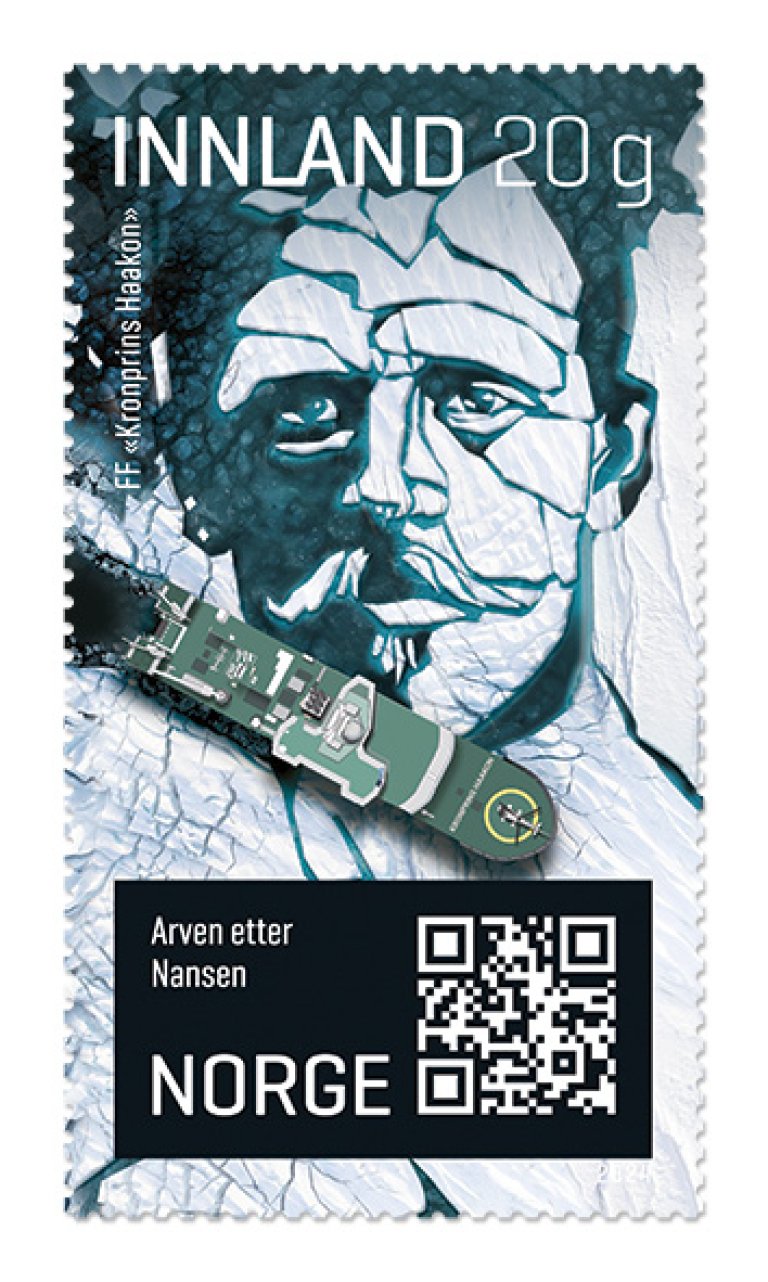 - Motiv: Fridtjof Nansen og forskningsskipet FF "Kronprins Haakon", kart over havstrømmer i Norskehavet og QR-koder